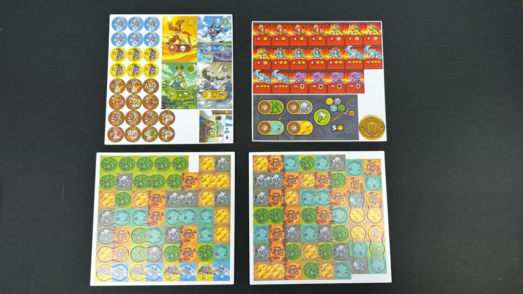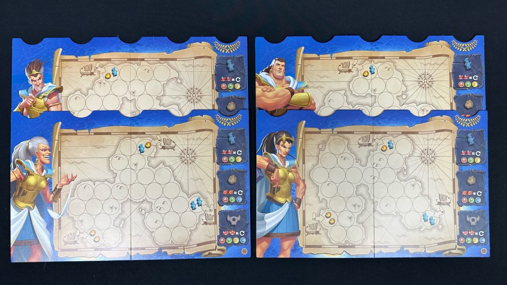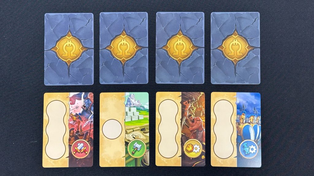 En este juego se combinan diversas mecánicas como la generación de terreno a base de losetas, recolección de recursos, selección de acción e incluso una pequeña parte de colocación de trabajadores. Todo ello muy bien mezclado para conseguir una buena experiencia de juego. A lo largo de una partida tendremos que desarrollar el nuevo territorio añadiendo nuevas losetas de terreno sobre las que construir, podremos producir recursos, como Hoplitas o el propio Oricalco, y además nos enfrentaremos a feroces criaturas que nos recompensarán con más recursos o nuevas habilidades. Y no nos olvidemos de los titanes, lo cuales están esperando ser atraídos por nosotros para otorgarnos su favor.